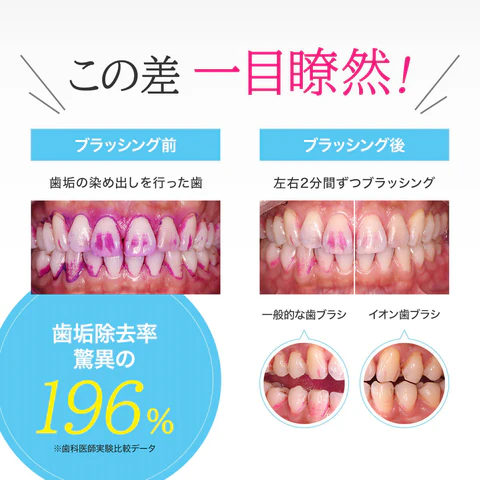 実際にイオンパを使い始めた患者さんで、通常の歯ブラシが苦手な方が、とてもよく歯垢が取れるようになることがよくあります。